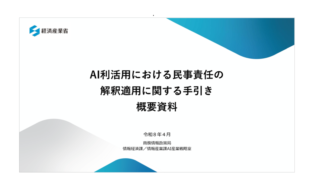「AI利活用における民事責任の解釈適用に関する手引き」が公表されました。
